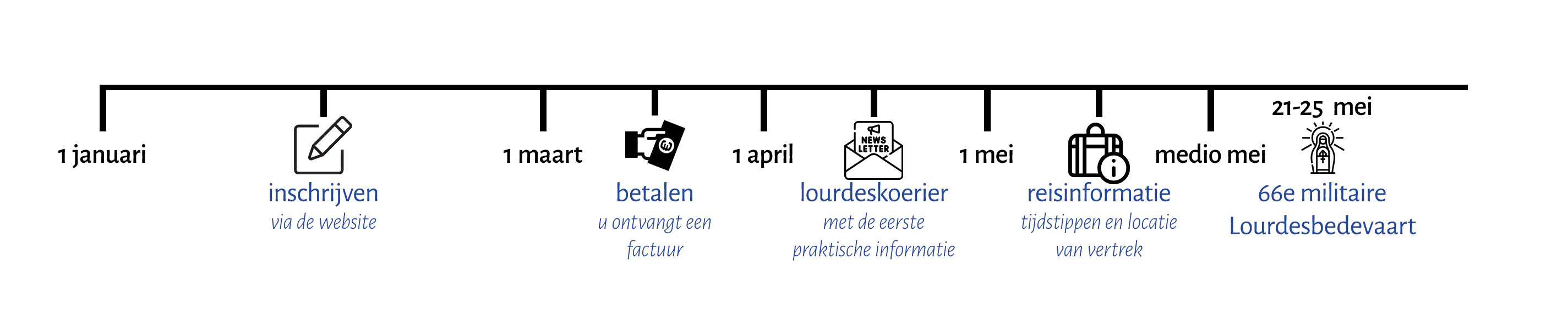 Vanaf 5 januari kunt u zich inschrijven voor de Militaire Lourdesbedevaart van 2026. Dit gebeurt via het Huis voor de Pelgrim. Als u op onderstaande link klikt wordt je doorverwezen naar deze website.